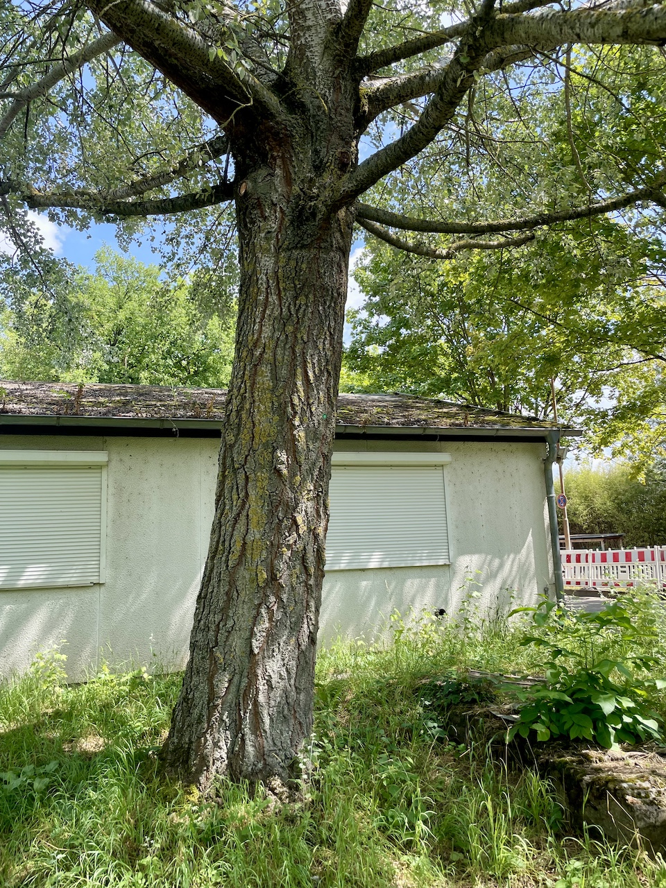 Gerade gewachsener, in der Krone unbedrängt wachsender Baum, Krone relativ gleichmäßig in allen Richtungen ausgebildet. Krone verzweigt sich in ca. 4 m Höhe. Zahlreiche Wurzelbrut vorhanden.