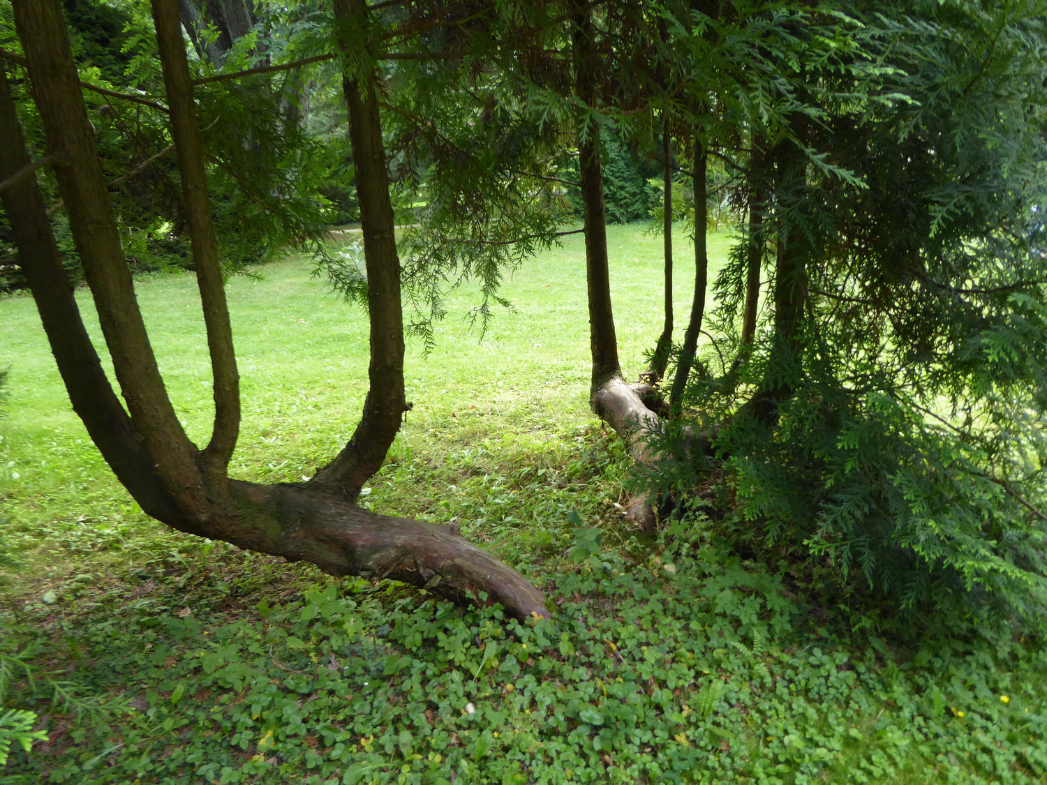 Als Sorte 'Variegata' gepflanzt, später auseinandergebrochen, jetzt neunstämmig, nur grün.