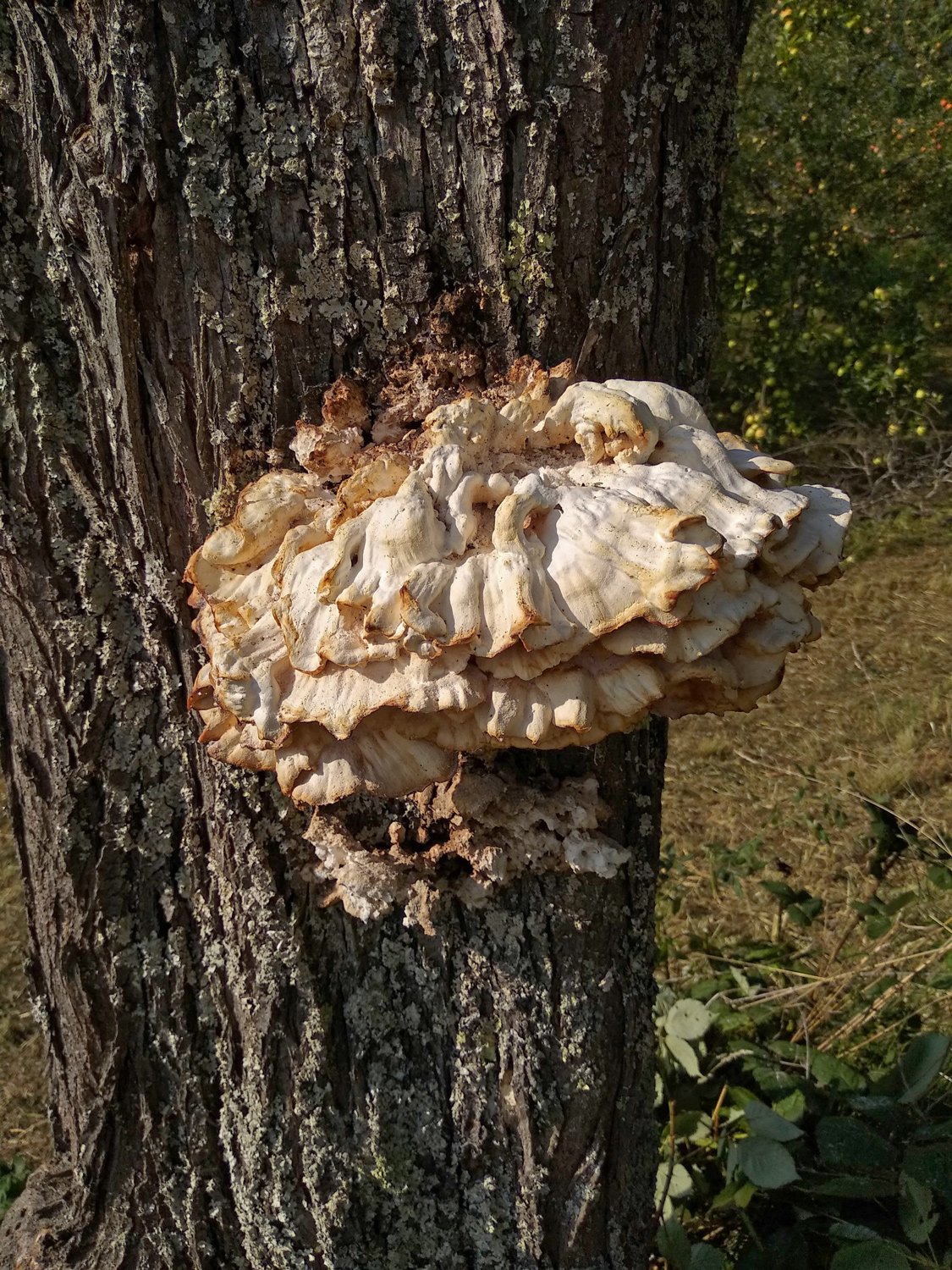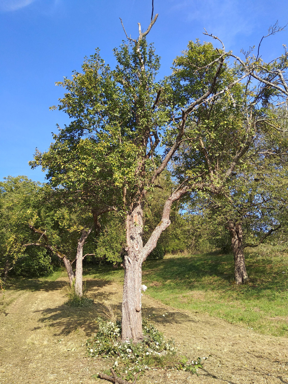 Sehr alte und seit dem 17. Jh. in Deutschland weit verbreitete Sorte. Fuß-Veredelung. Große Pilzfruchtkörper des Schwefelporlings.