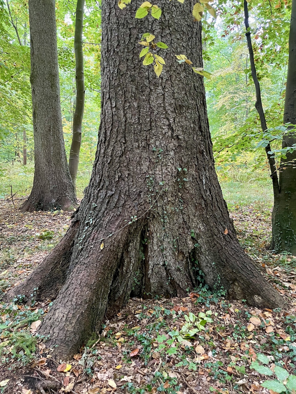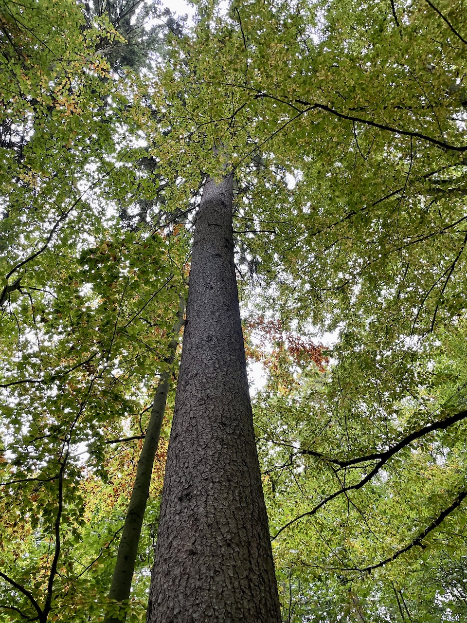Kerzengerader astfreier Stamm, dichterer Waldbestand, daher sehr hoher Kronenansatz.