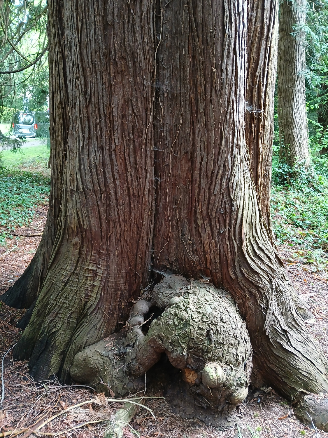 Knollige, aufgebrochene Wucherung am Stammfuß.