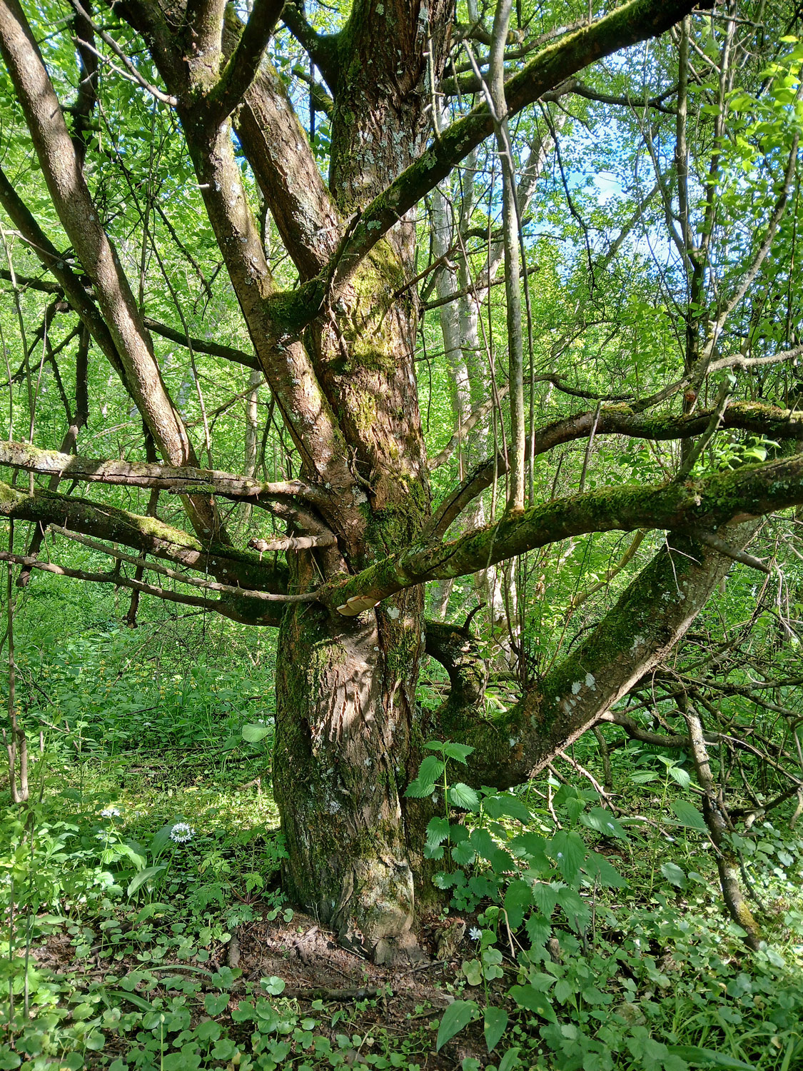 Äste sind aufgrund von Lichtmangel in Teilen abgestorben. Dicht belaubt sind nur die oberen und äußeren Partien der Krone.