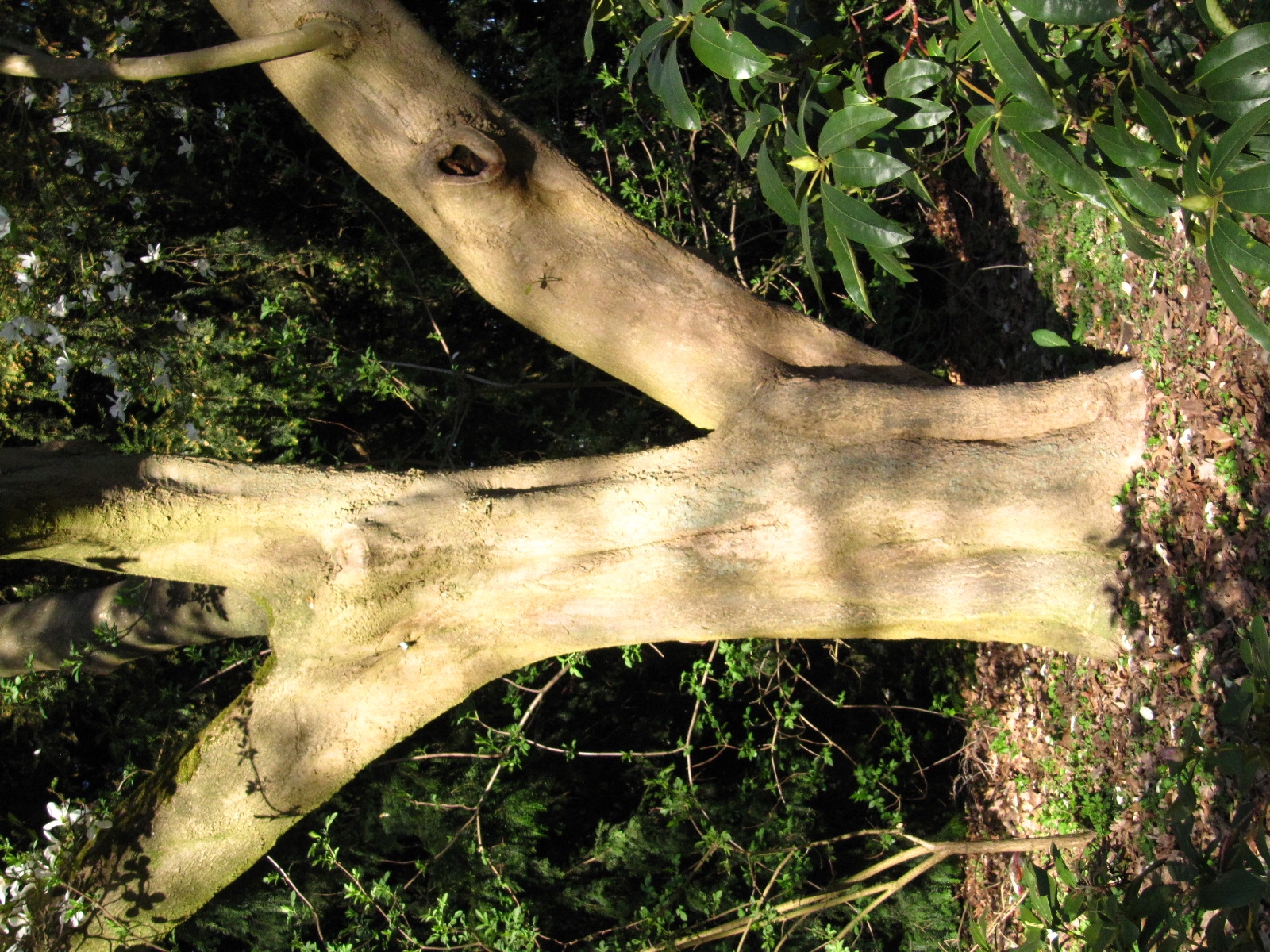 Der zweite Stämmling hat einen Umfang von 142 cm Umfang. In 40 cm Höhe, unterhalb der ersten Gabelung, 244 cm Umfang.
