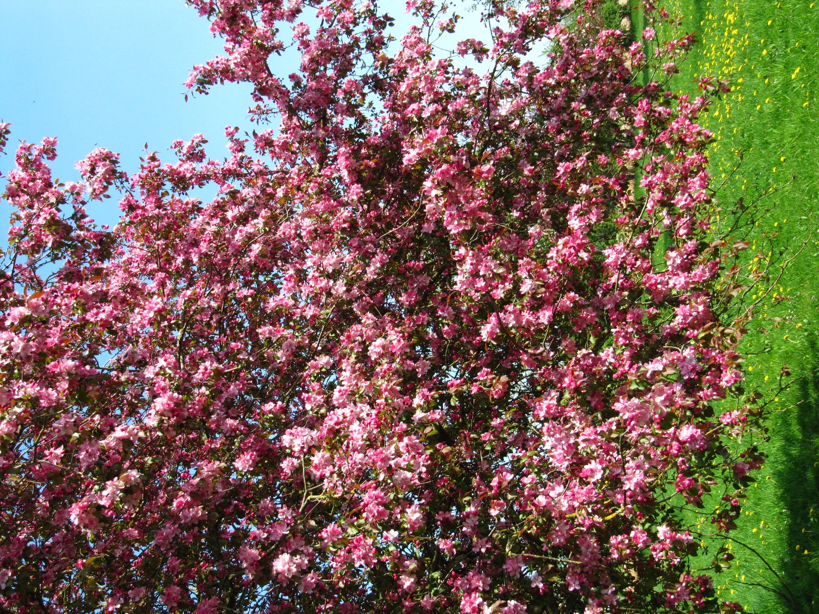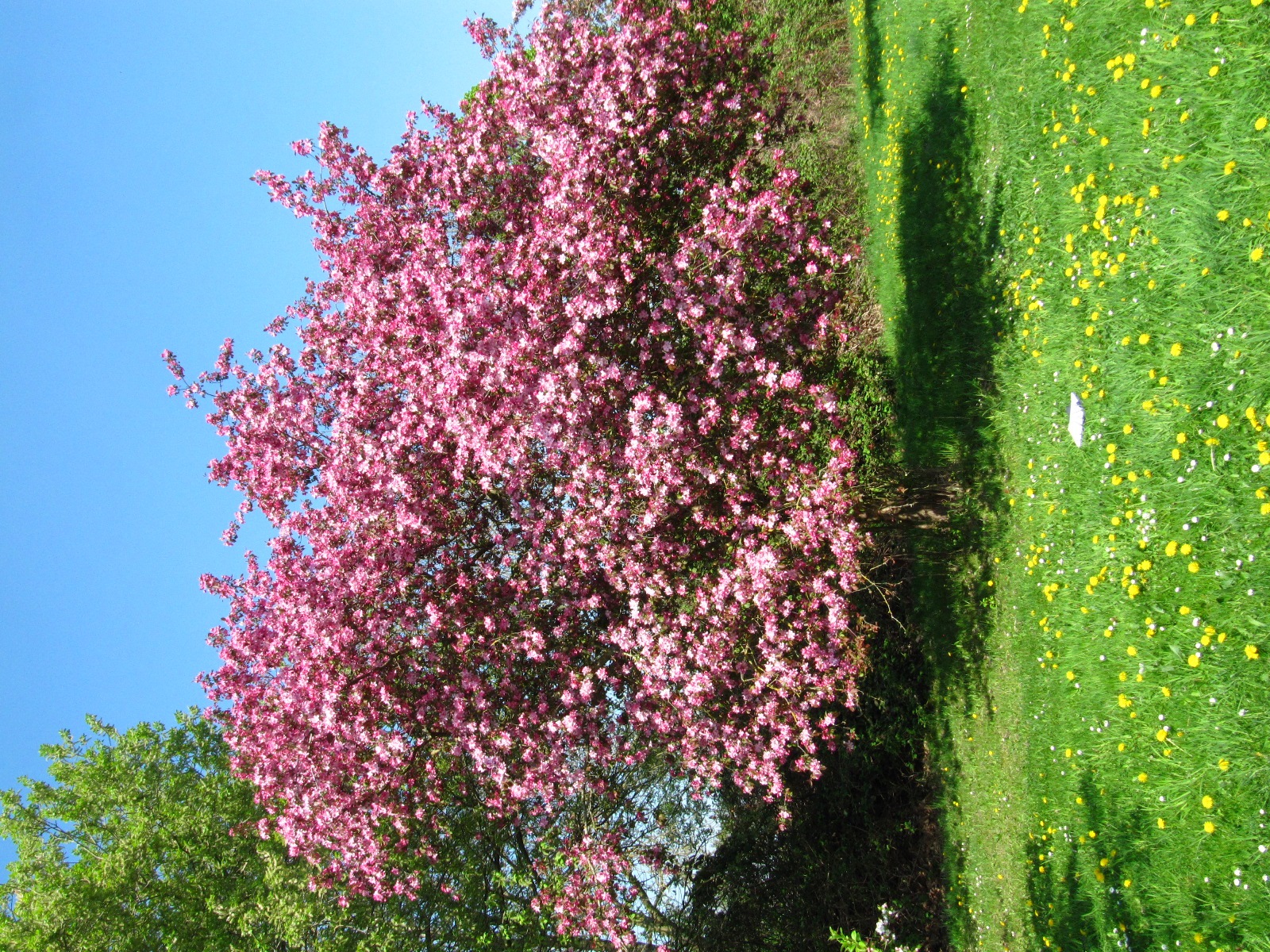 Stärkstes Exemplar unter den vorhandenen Zierapfelsorten in diesem Arboretum, unter den Rotblühenden sowieso.