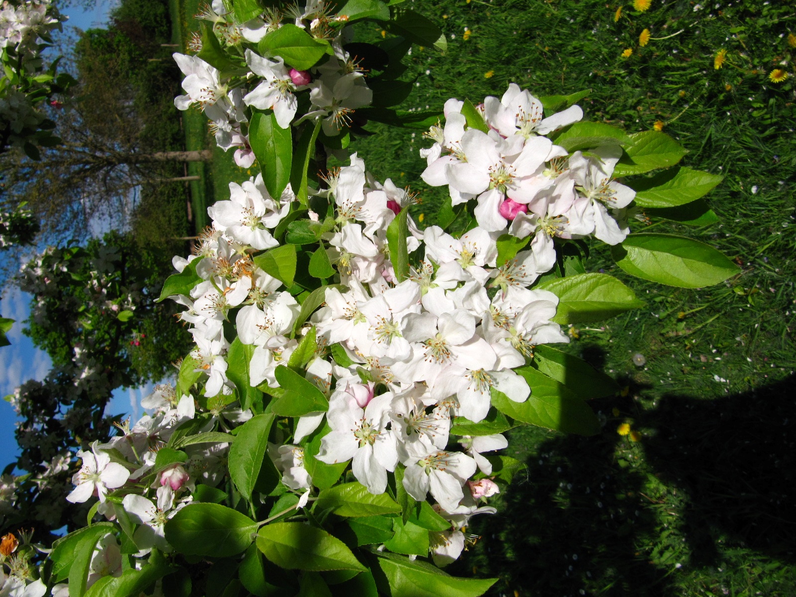 Arboretum am Schloss Erbhof. Zier-Apfel-Quartier, 2 Reihen am NW Rand. Östliche Reihe, 5. Baum von vorne.