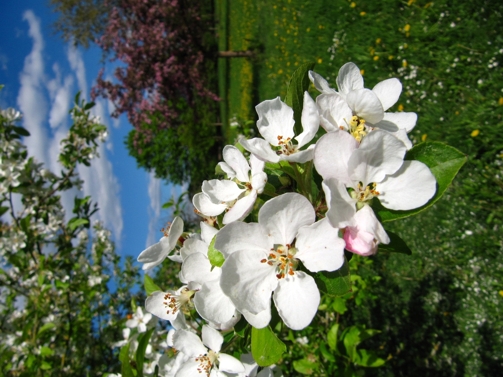 Arboretum am Schloss Erbhof. Zier-Apfel-Quartier, 2 Reihen am NW Rand. Westliche Reihe, ein Baum vor M. baccata 'Rudolph'.