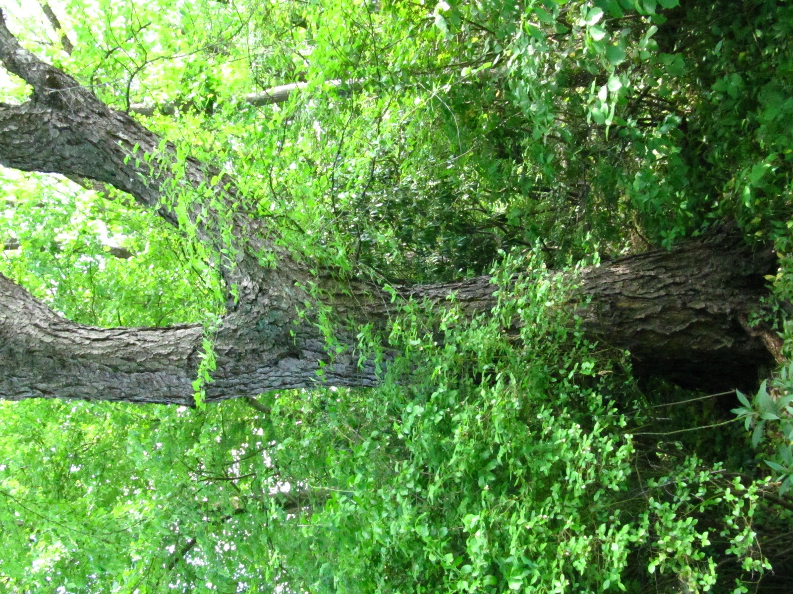 Stamm im Gehölz versteckt und ohne Schild. Etwas östlich ein weiteres, gut sichtbares, vermutlich gleich altes, ab 70 cm Höhe zweistämmiges Exemplar mit breiterer Krone. Zwei weitere Jungbäume in der Nähe.