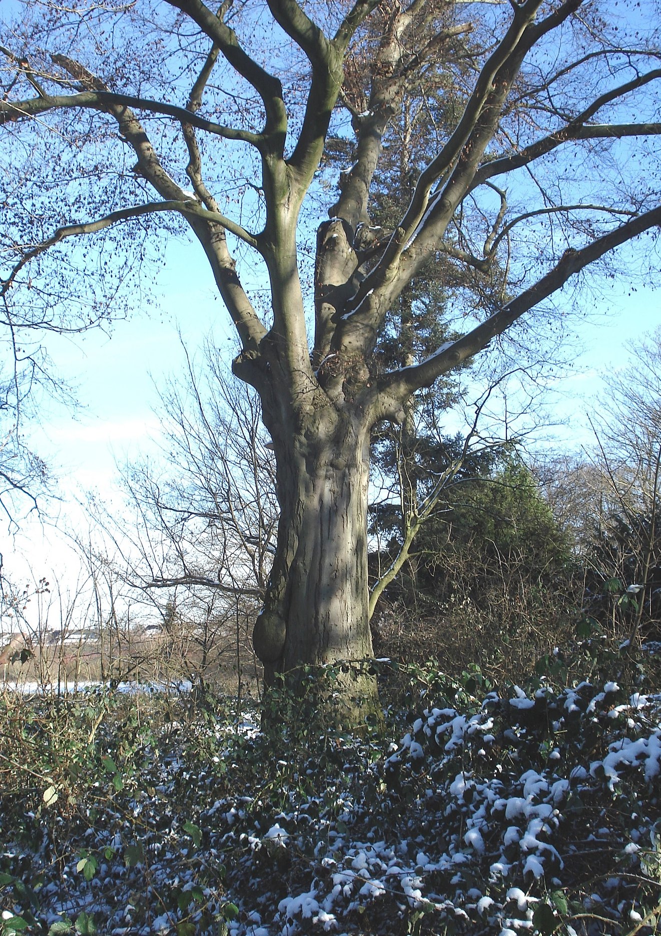 Krone stark gelichtet. Ein großer Astausbruch. Zylindrischer, massiver Stamm bis in den Kronenansatz noch gut erhalten!