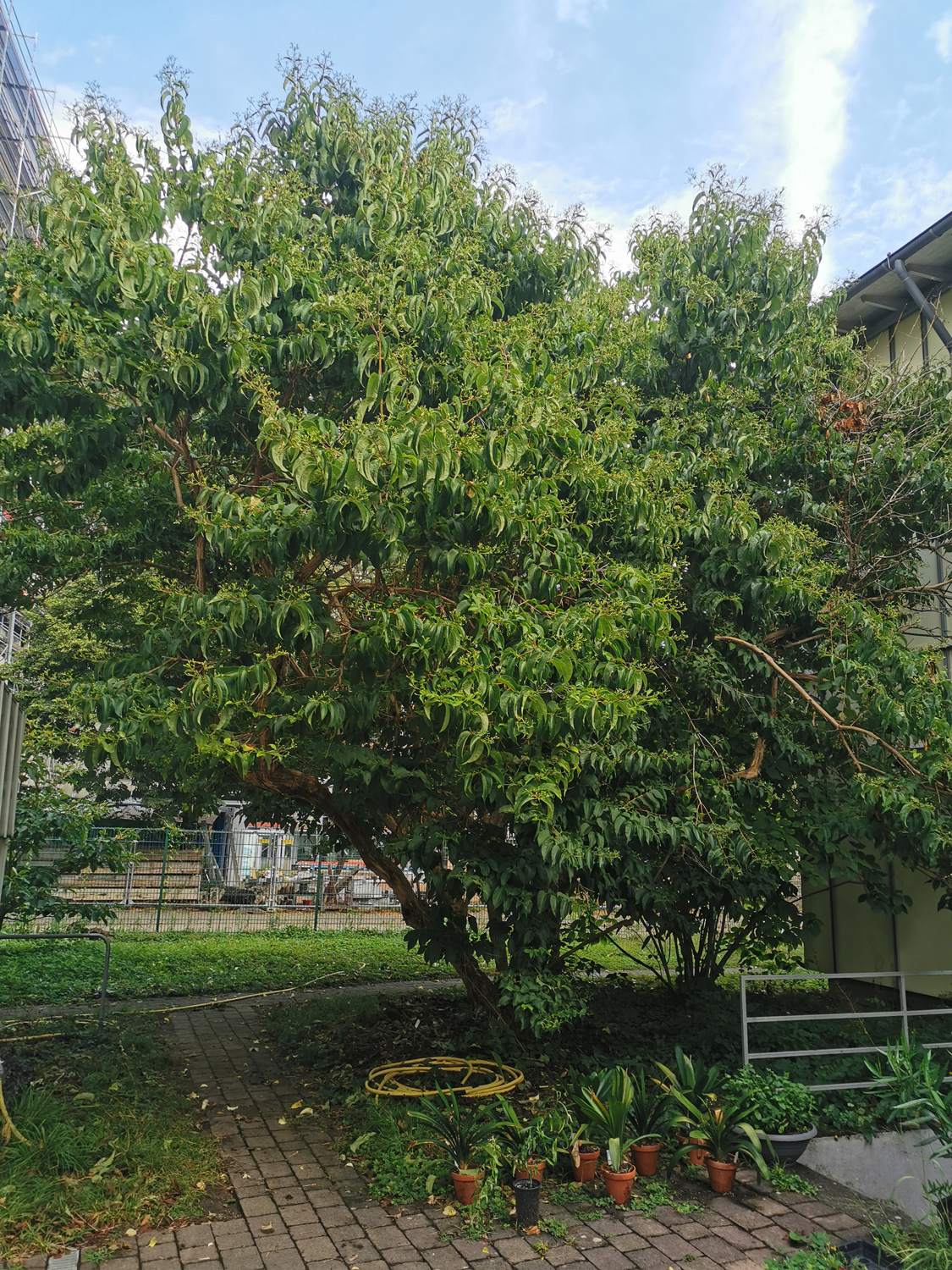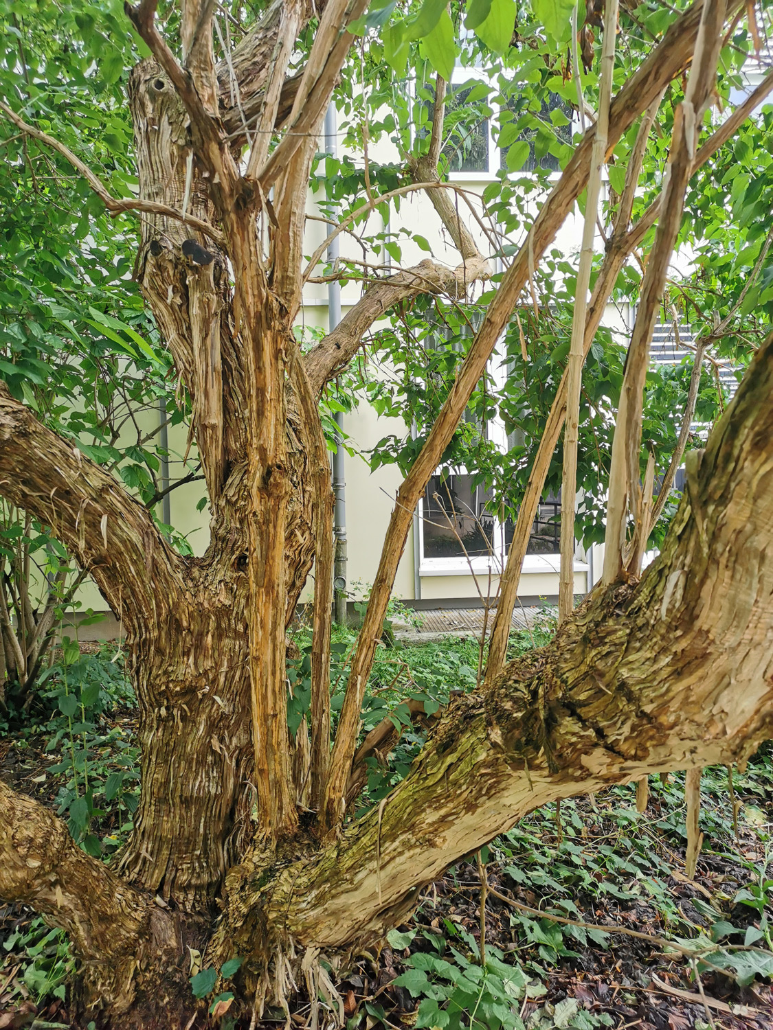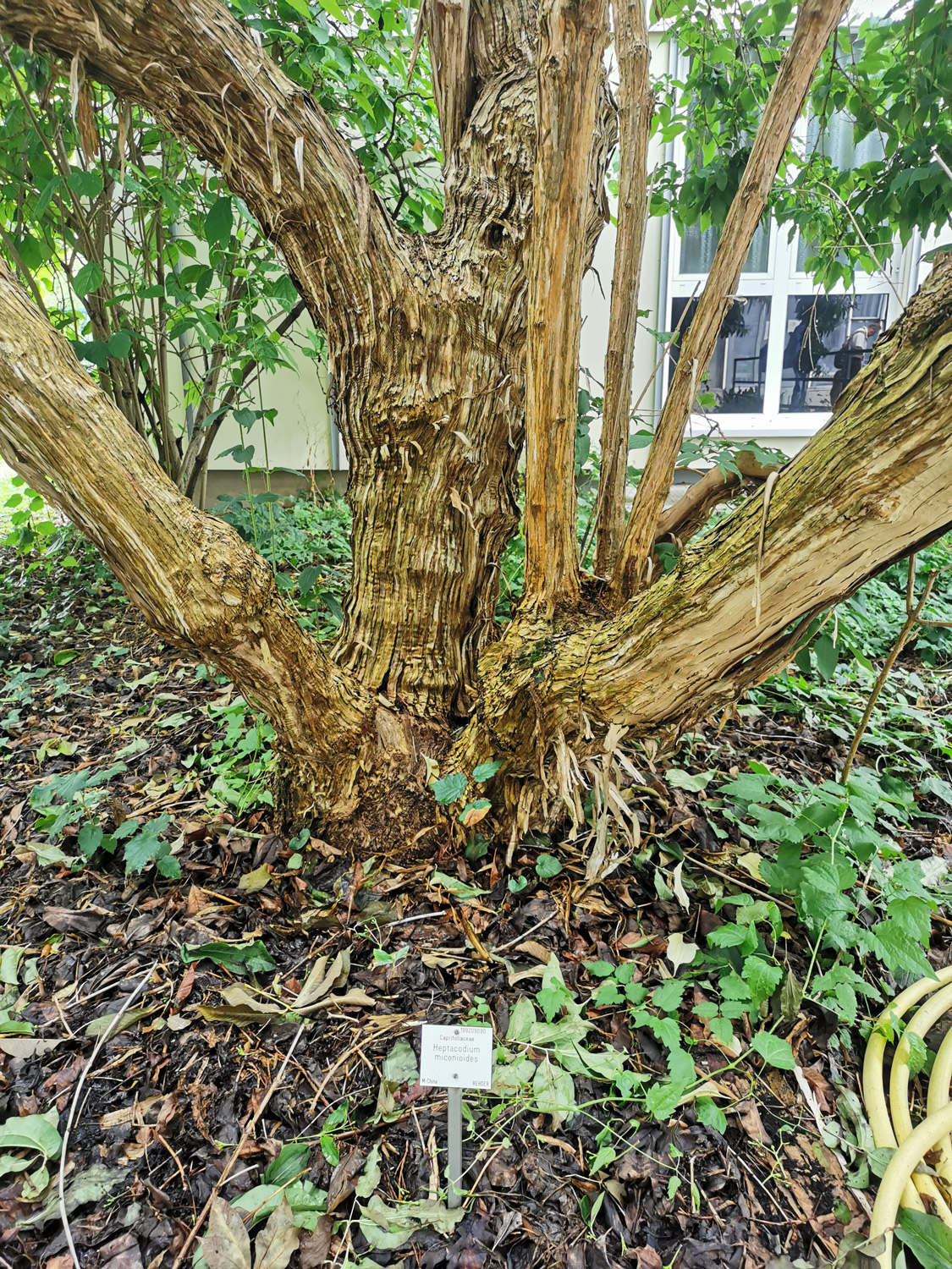 Das Gehölz stammt von der Ersteinführung der Heptacodium Anfang der 80er Jahre aus Paris von dem französch-südafrikanischen Botaniker Hermann Heino Heine (1923-1996), damals auch Mitglied in der Deutschen Dendrologischen Gesellschaft. Gepflanzt wurde der Heptacodium von Dr. Ulrich Hecker, dem damaligen Kustos des Botanischen Gartens in Mainz.