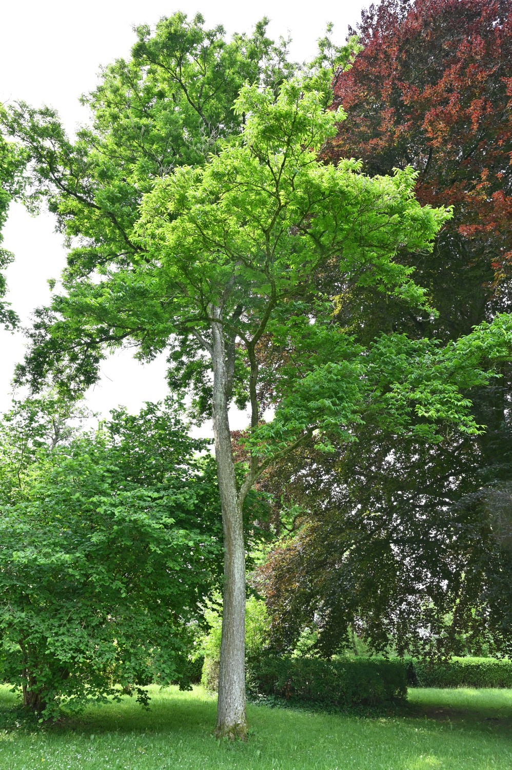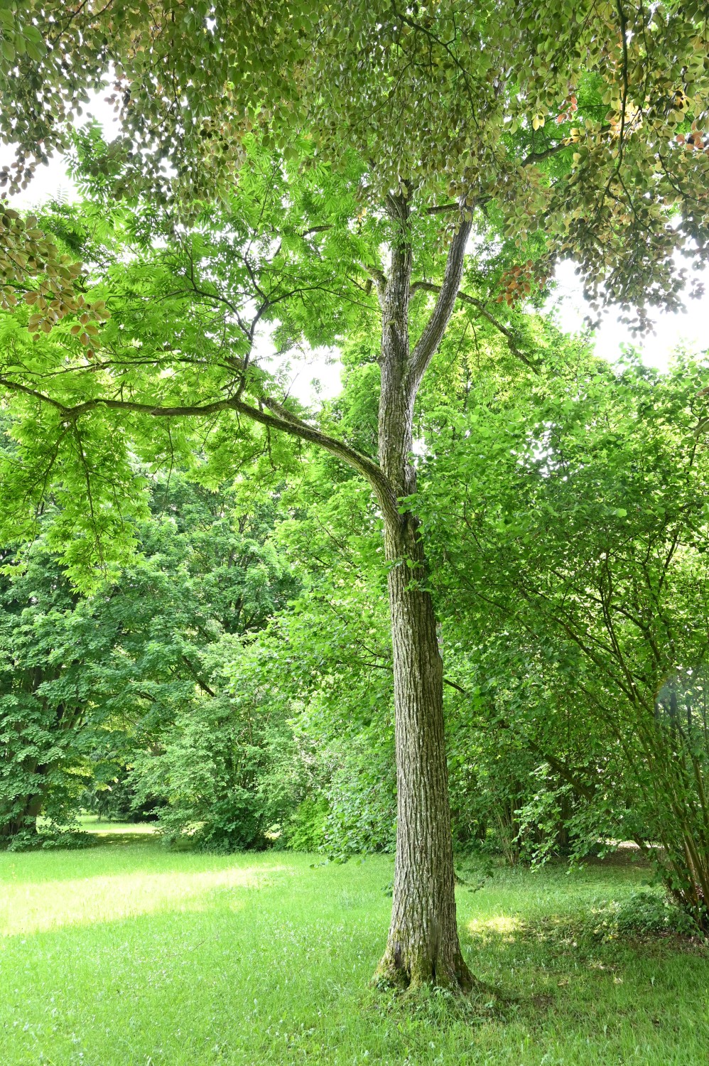 Durchgehender, aufrechter Stamm, erster Ast ab ca. 3,5 m, Krone ab ca. 6 m.