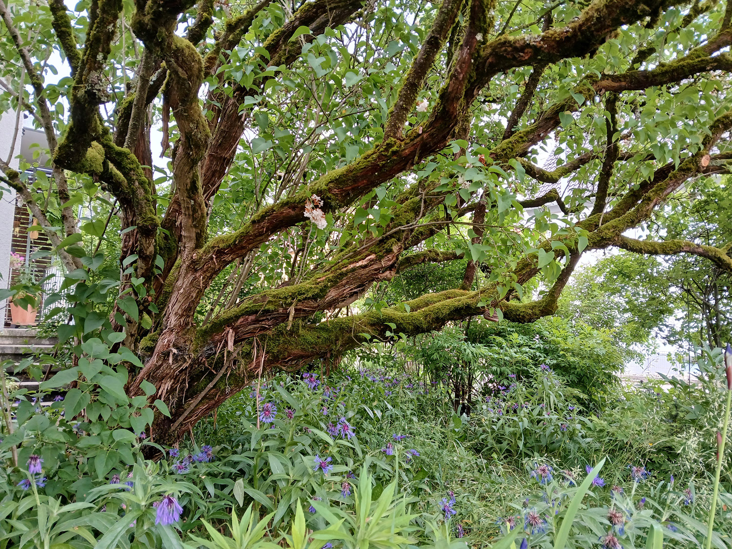 Viel Schatten in dicht bewachsenem, naturnahem Garten. Dadurch meist ausreichend feucht und somit keine Trockenschäden. Dichter Moosbewuchs auf den Astoberseiten.