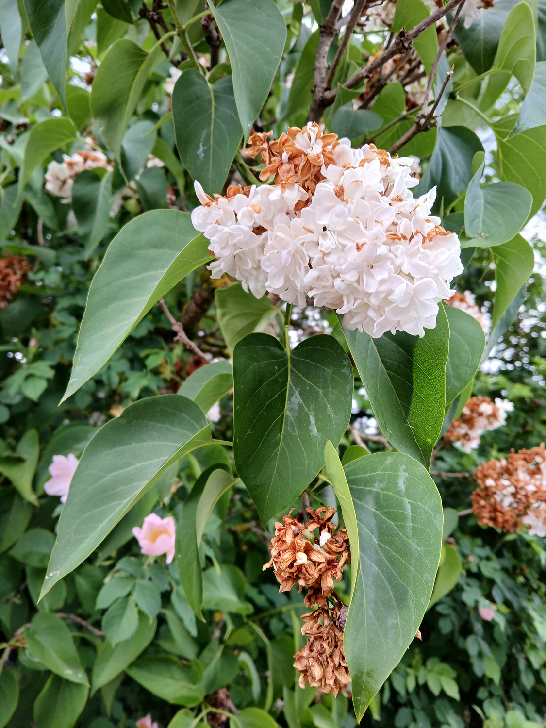 Weit ausladender Strauch mit fünf alten Hauptästen, die bis ca. 50 cm Höhe verwachsen sind und sich zunehmend nach unten neigen. Weiß blühend.