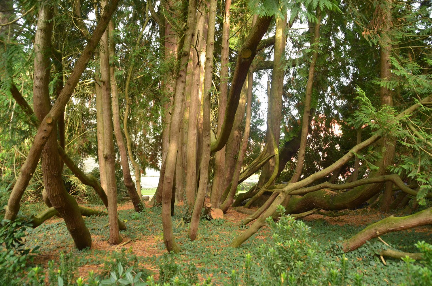 Zentrum mit fünf, bis in verschiedene Höhe verwachsenen Stämmen, sowie mehr als 30 Ableger in der Schleppe.