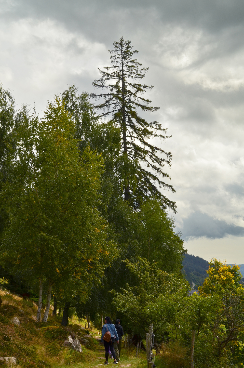 Standort in offener Weidelandschaft mit alten Fichten, sowie Vogelbeere, Wildapfel und Birke am Steilhang des Menzenschwander Albtals. Messung rechtwinklig zum Stammverlauf, wegen des steilen Hanges talseitig bei etwa 2,30 m, hangseitig bei ca. 90 cm Höhe.