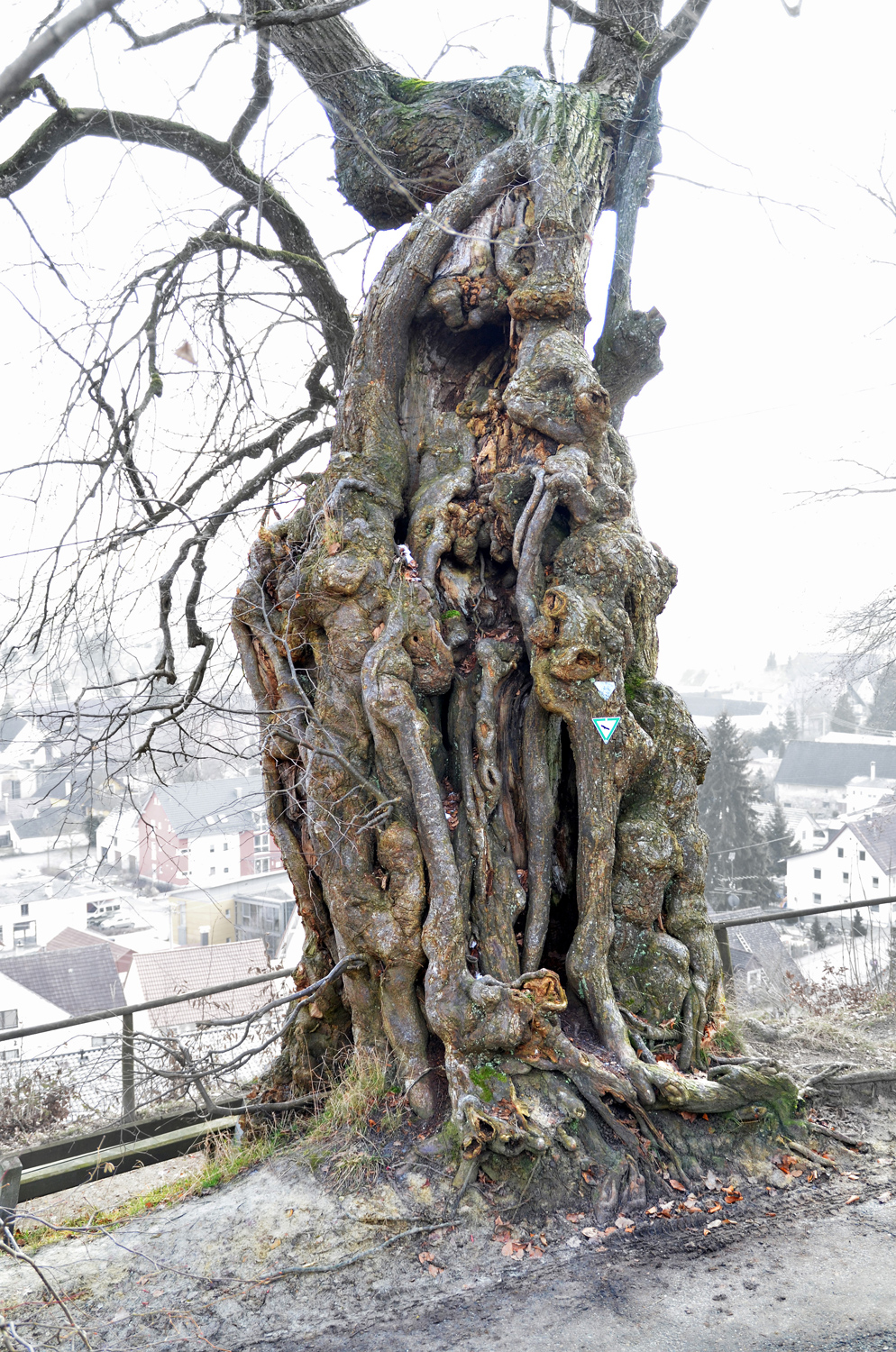Am Kronenansatz, wo vor Urzeiten ein riesiger Ast ausgebrochen ist, sind heute noch zwei größere Äste vorhanden, deren jüngere Austriebe die heutige Krone bilden.