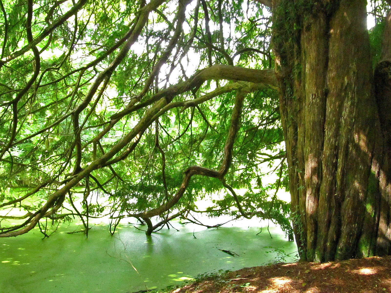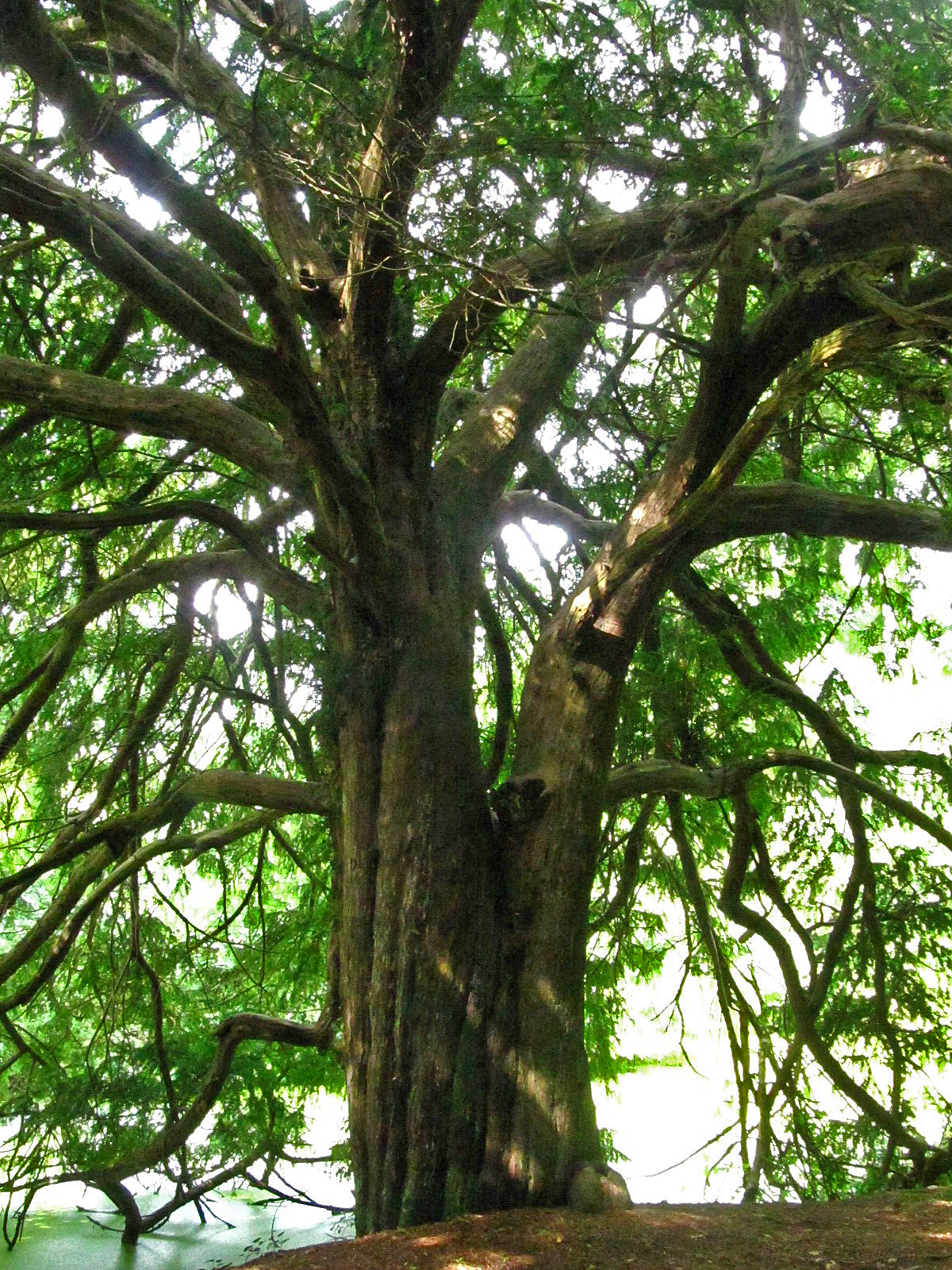 Schönste und mächtigste Eibe dort. Weitere fünf Eiben um und über 3 m, in 1m Höhe gemessen. Eine weitere davon in malerischer Uferlage und mit ausgebreitetem Kronenschirm.
