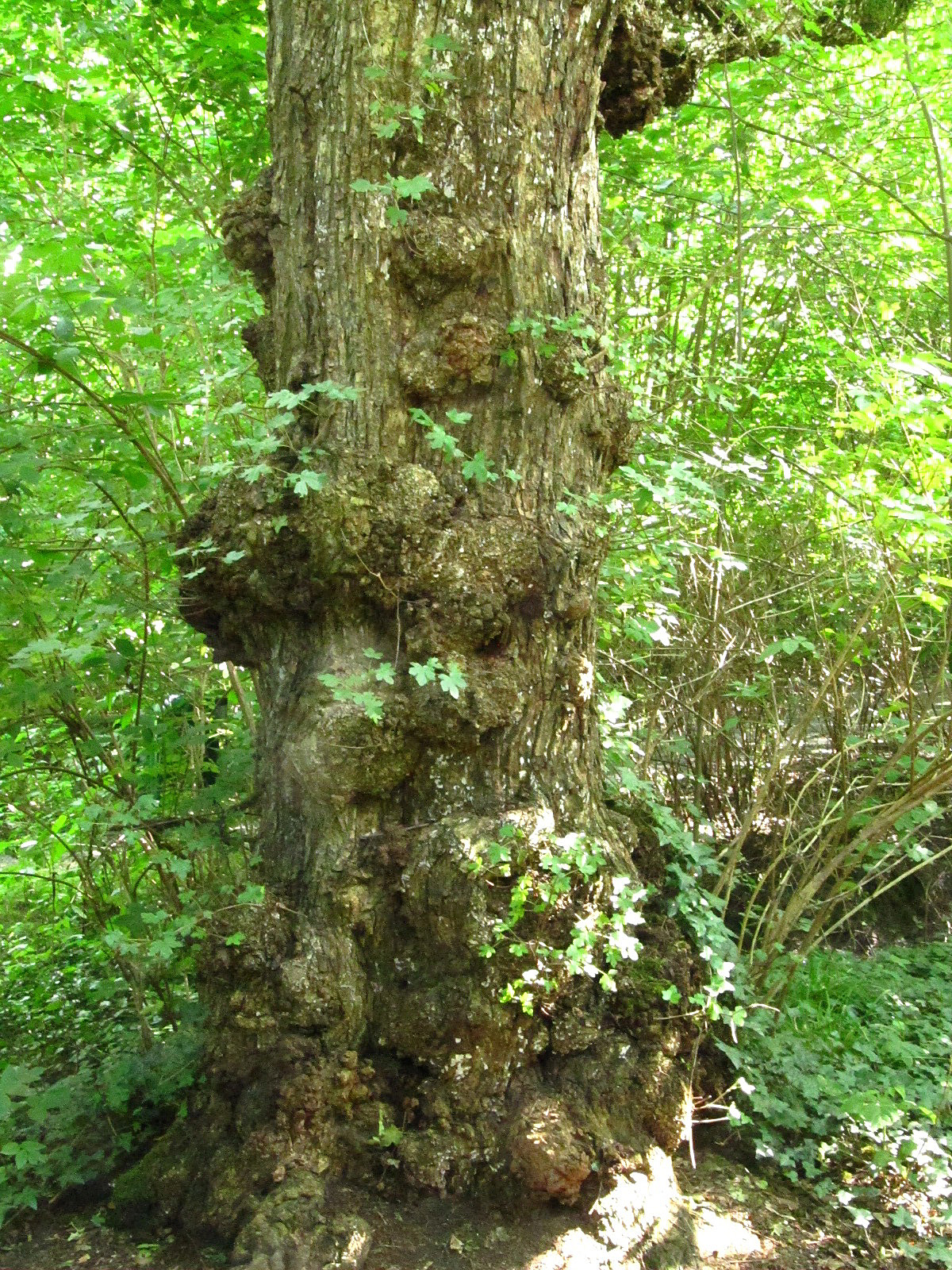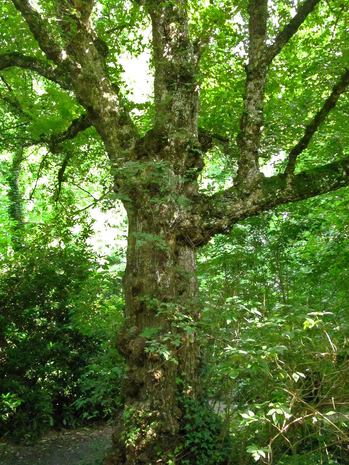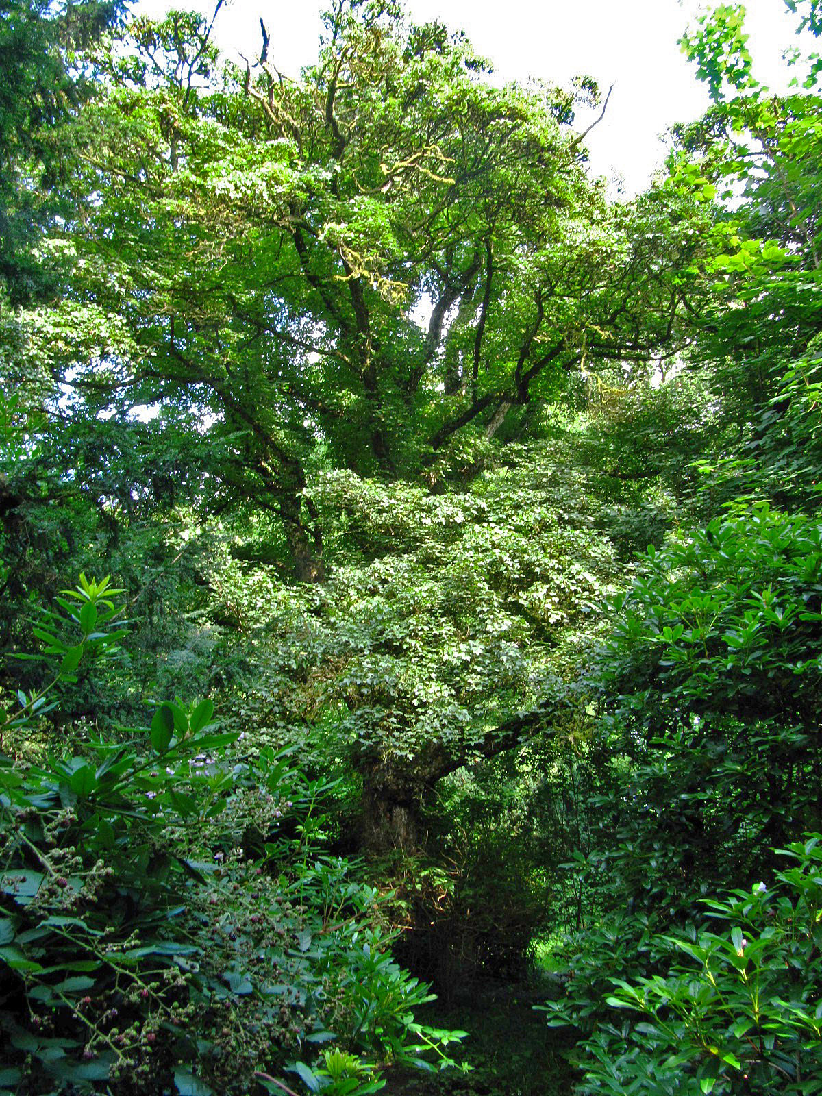 Ausgebreiteter Kronenschirm, ehemals freistehend.