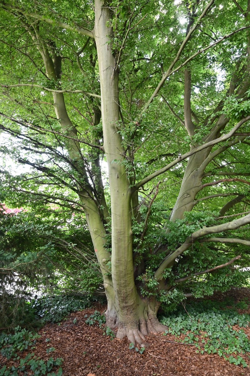 Von Boden weg vielstämmig, buschförmig, Äste nach Westen bis auf den Boden reichend, nach Osten zum Weg aufgeastet.