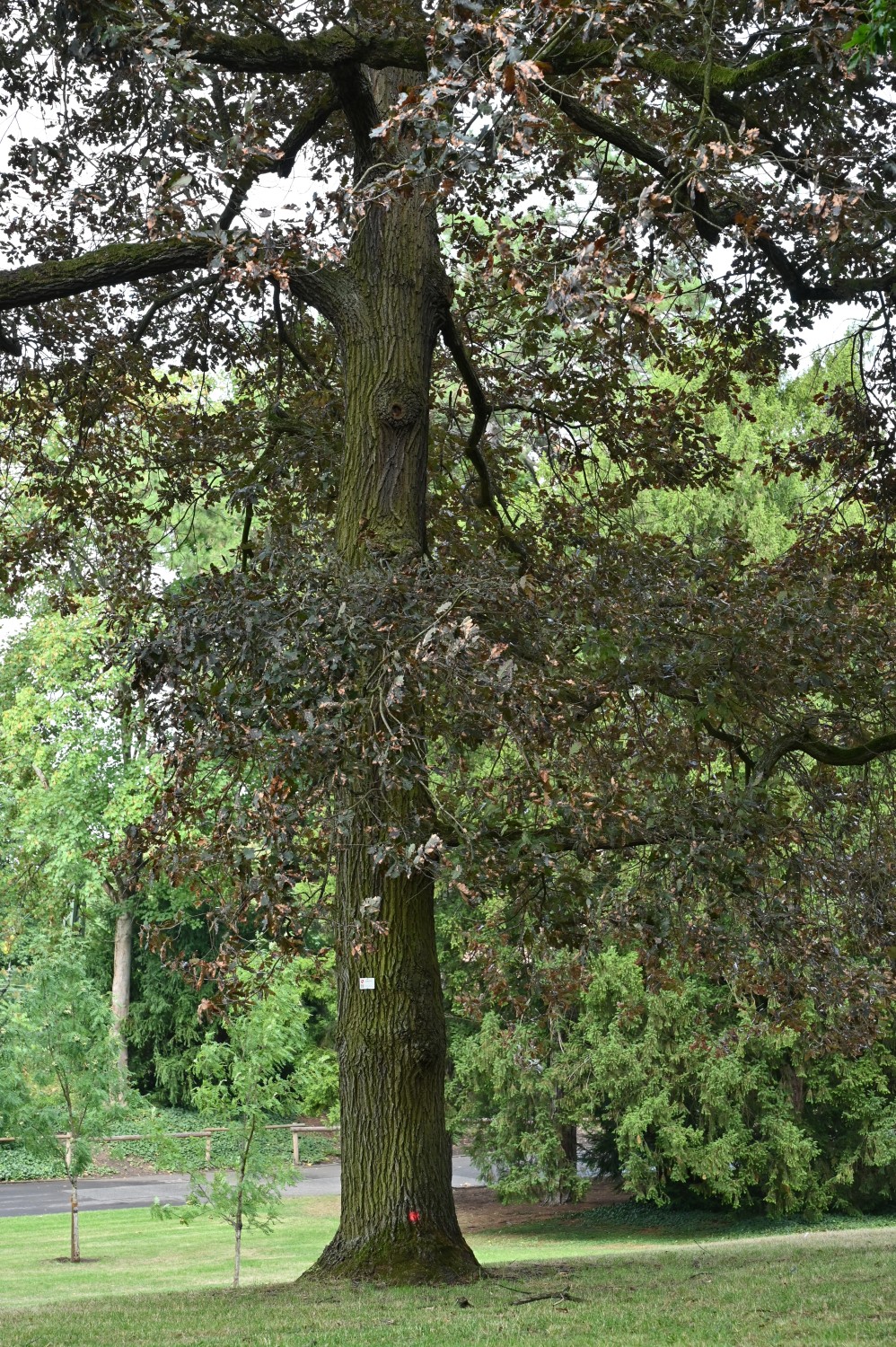 Baum mit Schild lediglich als Quercus petraea bezeichnet, Besonderheit als sehr seltene Sorte nicht angegeben.