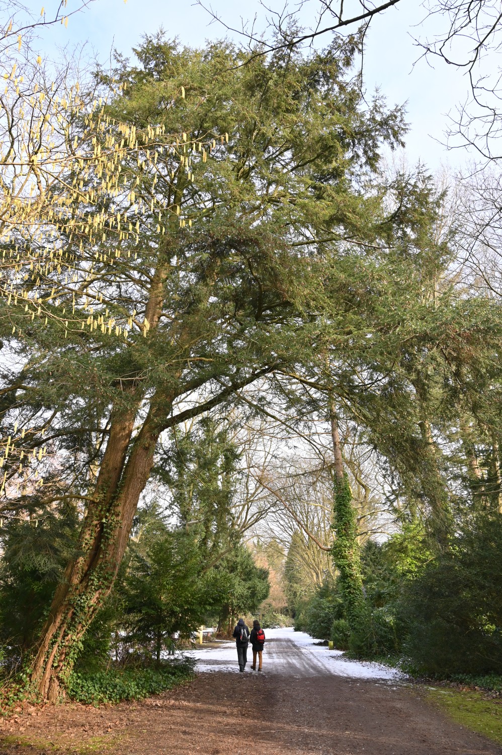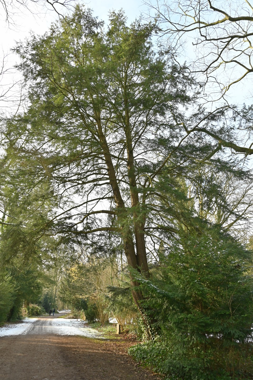 Stamm und Krone über den Weg geneigt. Ab ca. 2 m Höhe zweistämmig, wahrscheinlich zweikernig.