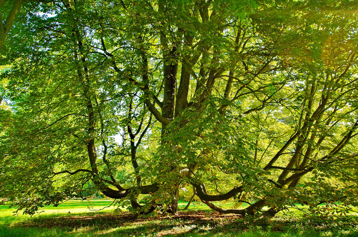 Solitär. Tief angesetzte, weit ausladende und teilweise auf dem Boden aufliegende Starkäste.
