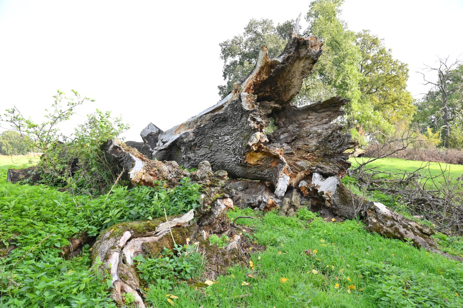 Solitär, mächtiger, beuliger und hohler Stammsockel.