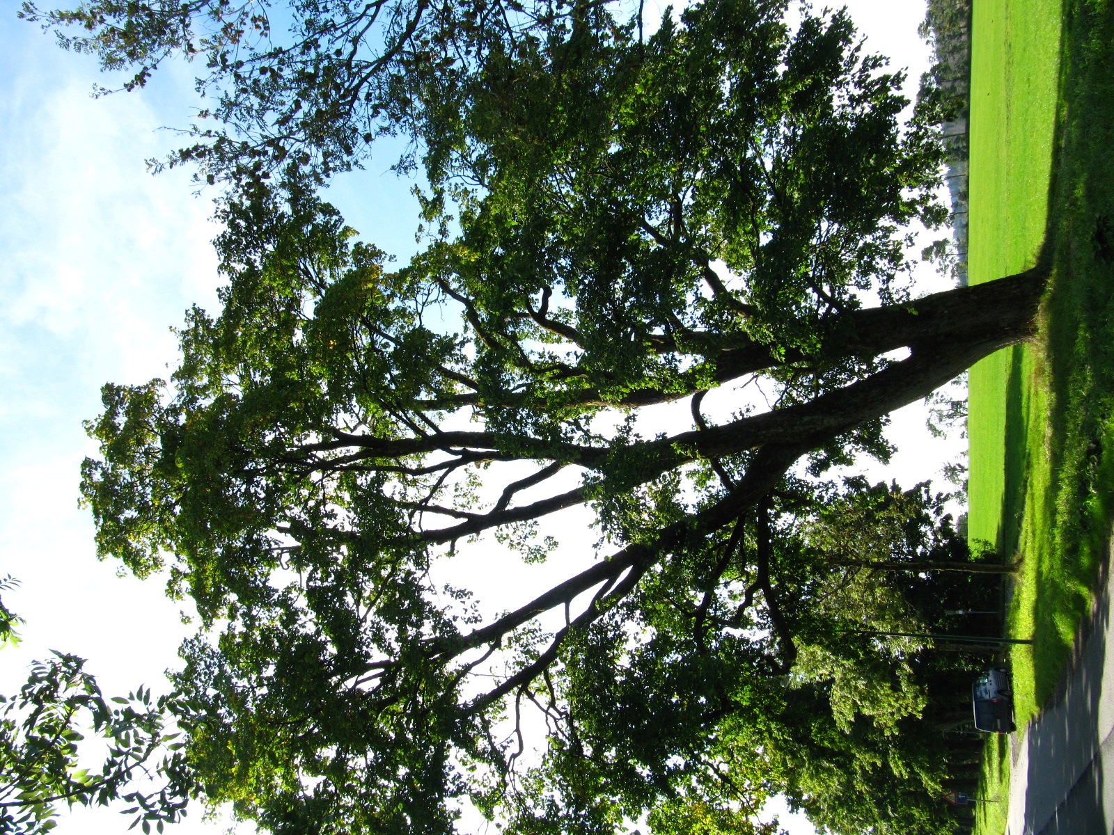 Windgeformte, gedrungenere Krone, da windexponierter Standort auf 600 m Höhe. Dreistämmig ab 2 m Höhe. Krone 19 m, in O-W 26 m.